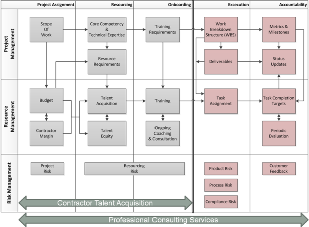 We approach contract talent acquisition using a PMO model. We treat your project as if it were ours using the following PMO service model:
